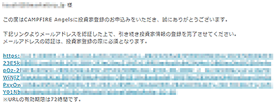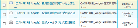 審査が完了すると、CAMPFIRE Angelsから「投資家登録が完了いたしました」という連絡が来るのでそれを待ちましょう。