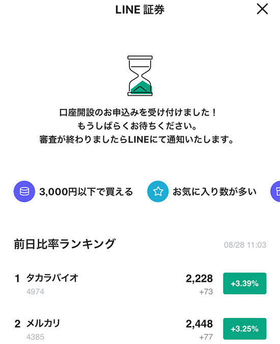 株を買うことはできませんが、LINE証券の画面や情報を見ることはできるので、いろいろ見てLINE証券の画面や操作に慣れておくとよいかもしれませんね。