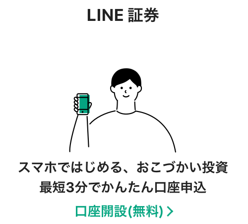 LINE証券は1株ずつ買えるから資金が少ない人でも買えるし、最大3株もらえるキャンペーン中なのでオススメです(キャンペーンの内容や適用方法は口座開設の申込の前にLINE証券の公式サイトで確認してください)
